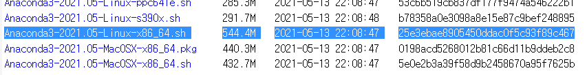 wget https://repo.anaconda.com/archive/Anaconda3-2021.05-Linux-x86_64.sh